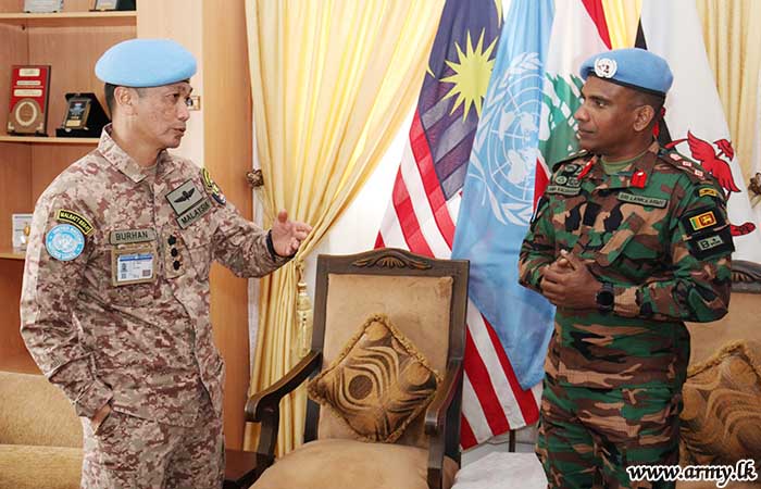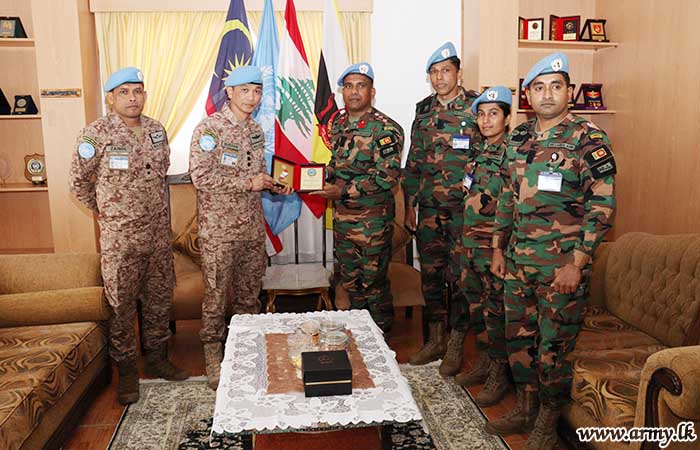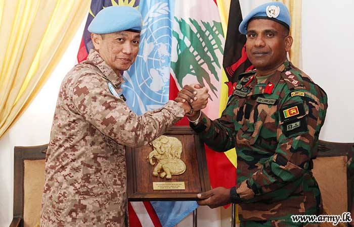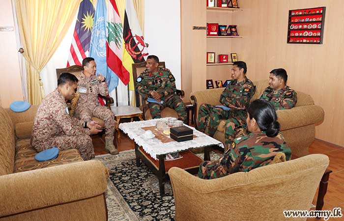 During the visit, Colonel D.P.L.T Kaluaggala RSP USP IG and the newly appointed MALBATT Commander, Colonel Buhran Bin Sagoni, engaged in a brief and amiable conversation concerning the current security situation in Lebanon. They also exchanged insights regarding the responsibilities undertaken by MALBATT troops and the troops of Sri Lanka Army in UNIFIL. The visit concluded with the exchange of tokens of appreciation between the two Commanders and a group photograph.
