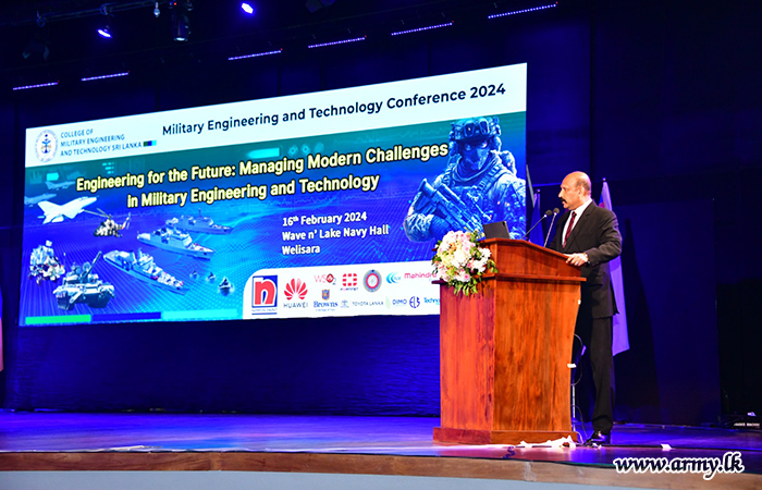 The inaugural Military Engineering and Technology Conference, organized by the College of Military Engineering and Technology in Sri Lanka (CMETSL), got underway on 16 February 2024, at the Wave n’ Lake Navy Hall in Welisara. General Kamal Gunaratne (Rtd) WWV RWP RSP USP ndc psc MPhil, Secretary to the Ministry of Defence, graced the event as the chief guest.