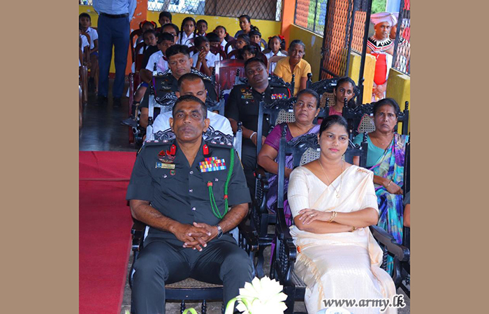 A group of philanthropists funded the event under the coordination of Lieutenant Colonel G.R.R.K.S. Jayarathne RSP psc IG, the Commanding Officer of 6 SLA. During the event, 36 students of Dagonna Ranasinghe Primary School received school accessories, and 60 pairs of spectacles were donated to visually impaired villagers.