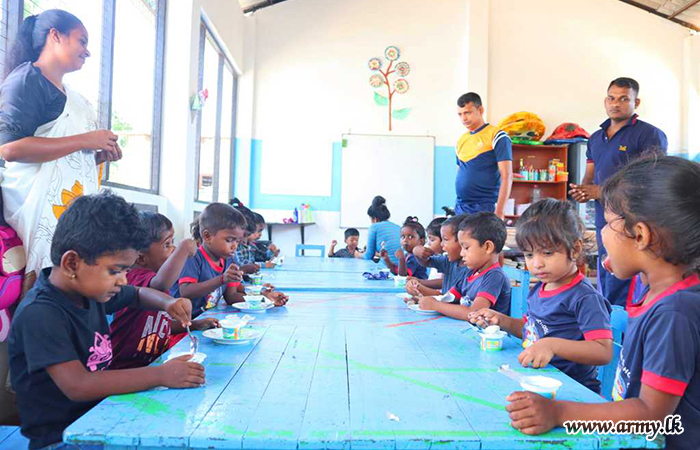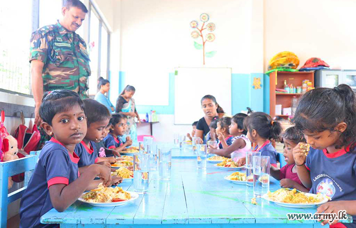 Troops of 11 SLE Provides a Lunch Treat for Children of Lakdaru Preschool in Navatkuli