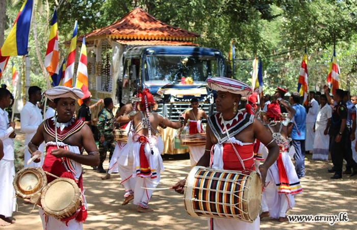 The tour was welcomed near Kalaoya area and carried in a procession to the Weheragala Buddhist Centre and the General Officer Commanding, Brigade Commanders, Senior Officers, Officers, Other Ranks and Government Officials arrived at the location. Additionally, 03 Officers and 50 Other Ranks of 4 Sri Lanka National Guard participated in the procession