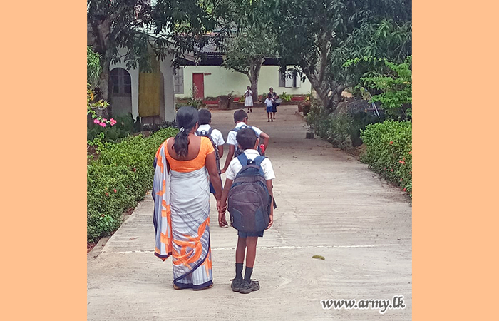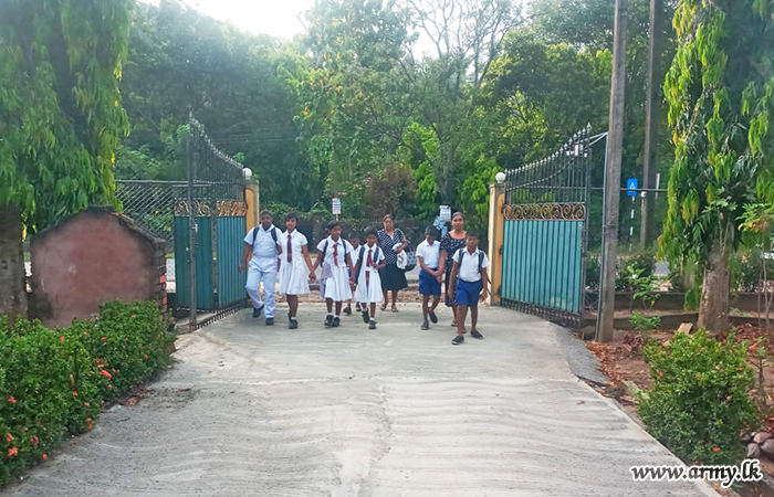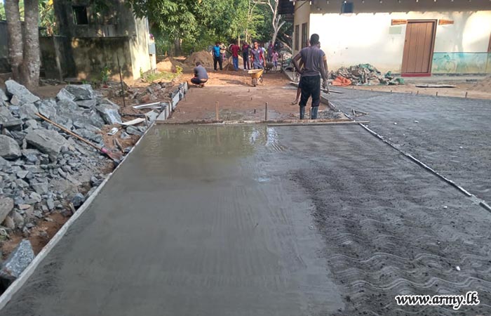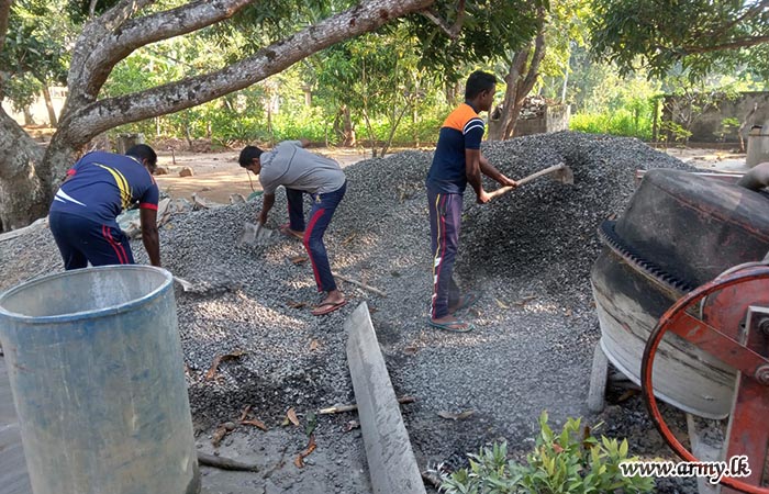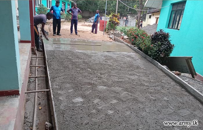 The initiative, guided by the General Officer Commanding, 12 Infantry Division, and supervised by the Commander of 121 Infantry Brigade, involved seven soldiers from the Corps of Engineer Services and nine soldiers from the 18 Gemunu Watch. The troops assisted in concreting the school's main road and repairing the lavatory system.