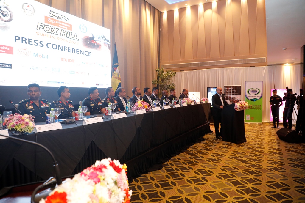 The Press Conference of the Asian Paints Causeway- Fox Hill Supercross 2024 organized by the Sri Lanka Military Academy in collaboration with Sri Lanka Automobile Sports (SLAS) was held successfully at the Blue Hall, Hilton Hotel, Colombo on 28 March 2024. The conference was graced with the participation of many local sponsors, SLAS, and SLMA officials, aiming to promote the upcoming 28th Fox Hill Supercross scheduled for 21 April 2024.