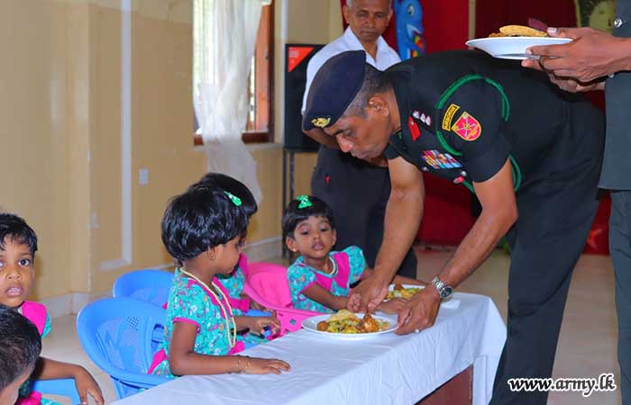 Troops of 6 Sri Lanka Artillery (6 SLA) offered a delicious lunch to 35 children at Peter Weerasekera Children Development Centre on 08 April 2024 coinciding with the Sinhala and Tamil New Year.