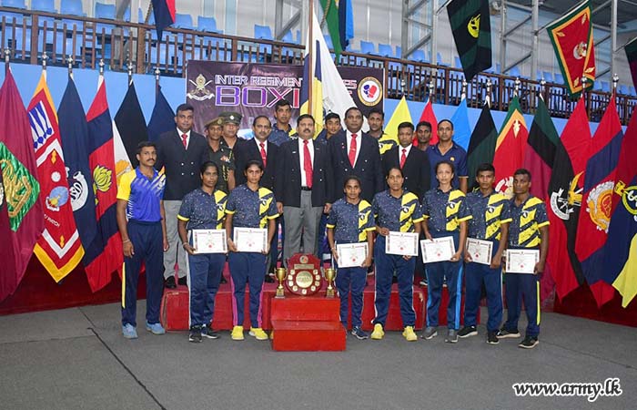 The Army Inter Regiment Boxing Meet took place at the Army Gymnasium in Panagoda from 07 April 2024 to 10 April 2024, featuring the participation of 113 male and female boxers representing 19 teams and 17 Regiments.