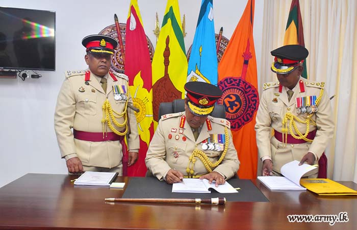 Then, symbolizing his acceptance of the new office amidst religious observances, Major General S.A. Kulatunge RWP RSP VSV USP psc, left his signature in an official document in the presence of Senior Officers. Additionally, the Senior Officer symbolically planted a sapling to mark the commencement of his tenure. Adding memories to the day, the Senior Officer was invited to pose for a few group photographs with the Headquarters staff.
