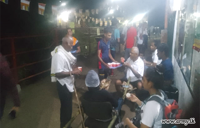 In response to a request from University of Moratuwa students and visually impaired individuals, under the guidance of Major General S.R.B Aluvihare RWP RSP VSP, the Commander of the Security Forces - Central, the 19 Sri Lanka National Guard (19 SLNG) provided accommodations and meals during their pilgrimage to historical Adam's Peak from 01 May 2024 to 02 May 2024.