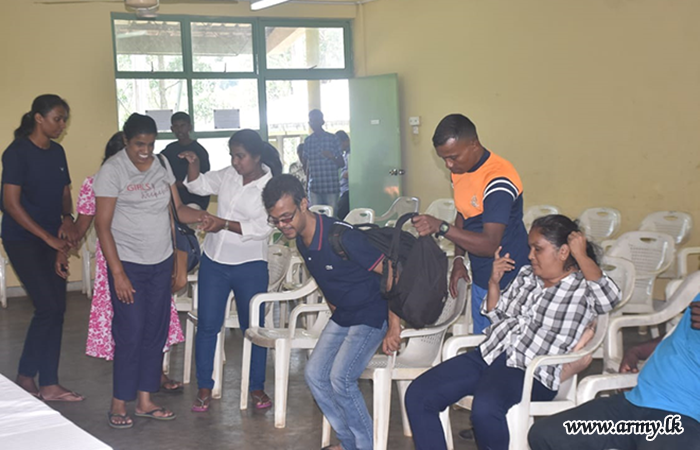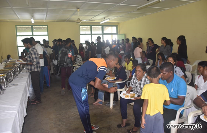 Under the supervision of the Commanding Officer of 19 SLNG, the troops coordinated accommodation at the 'Samanala Arana Holiday Resort,' managed by the Sri Lanka Electricity Board. Additionally, the soldiers of 19 SLNG prepared and served meals for the university students and 40 visually impaired individuals.