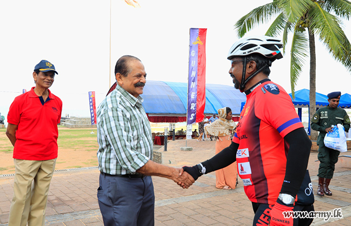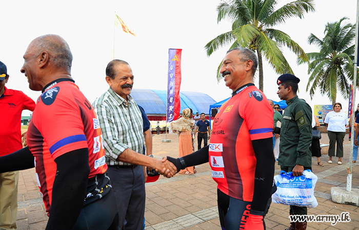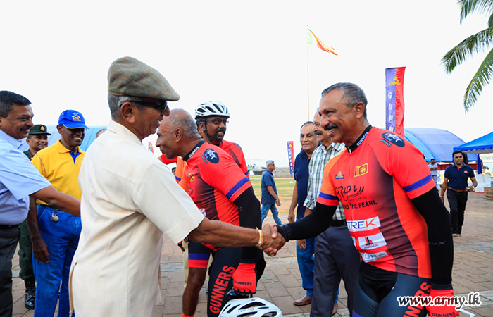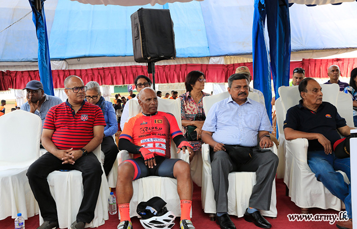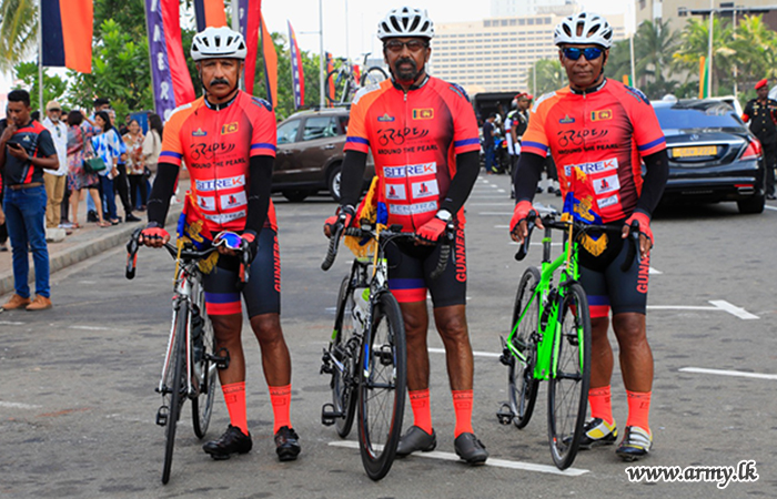 This bike ride was undertaken by three Army veterans: Major General S.R Balasuriya (Rtd) USP, Major General K.P.S Premalal (Rtd) RWP RSP USP and Colonel W.N.P.S.K Perera (Rtd) RWP RSP.