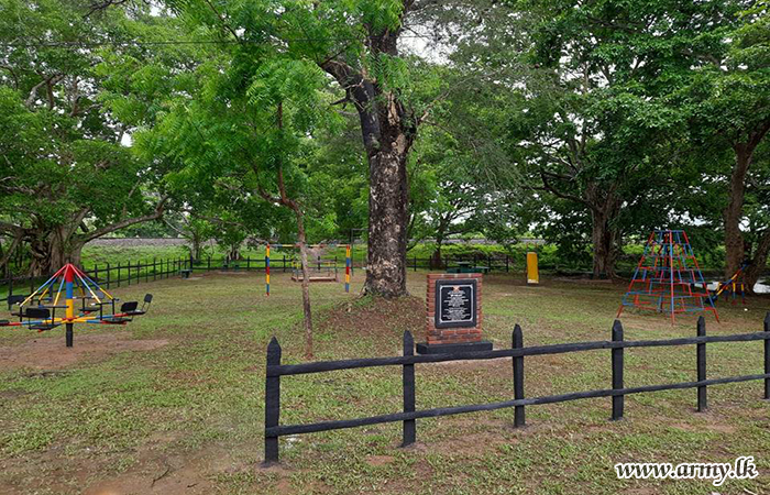 The newly constructed children’s park at Gajasinghapura was inaugurated by Major General W.P.A.D.W Nanayakkara RSP VSV USP ndu, the Commander of Security Forces - Wanni (SFHQ-W) on 21 May 2024. The children’s park was constructed by the troops of the 213 Infantry Brigade under the guidance of Major General H.H.K.S.S Hewage RWP RSP USP rcds psc, General Officer Commanding of 21 Infantry Division and the close supervision of Colonel P.M de Silva RSP USP, the Brigade Commander 213 Infantry Brigade.
