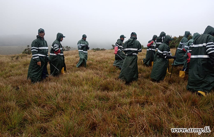 As per the request made by the Divisional Secretariat – Nuwara Eliya, troops of Security Forces (Central) conducted a cleaning campaign in Horton plains to remove invasive plants under the direction of Major General S.R.B Aluvihare RWP RSP ndu psc, the Commander, Security Forces (Central) on 22 May 2024.