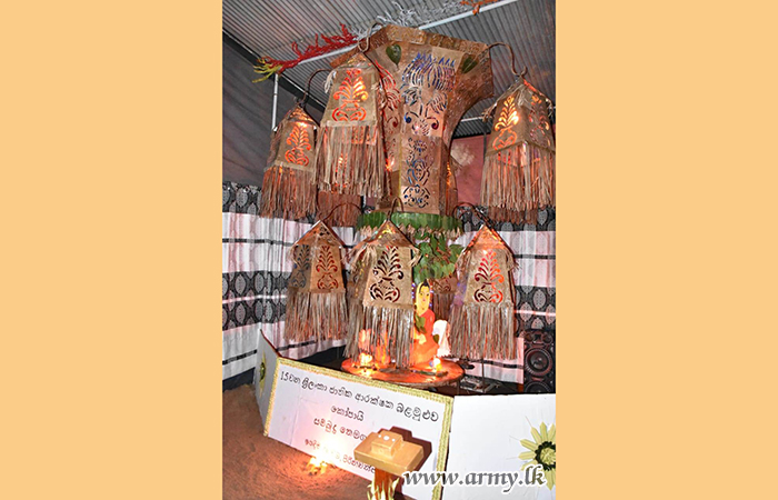 Adding glamour and festive atmosphere, troops of 51 Infantry Division with its under command Brigades and Battalions organized the decorated and colourful rotating Vesak lanterns around Ariyakulam lake in front of the Sri Naga Vihara Temple.