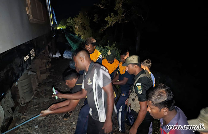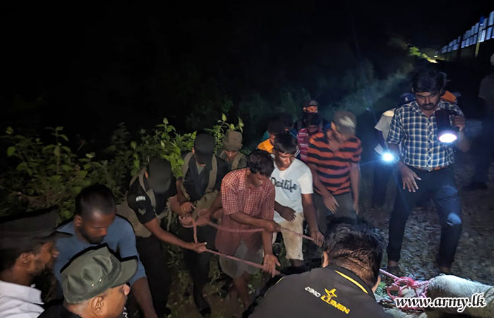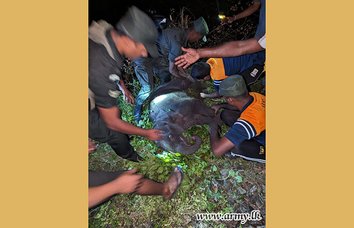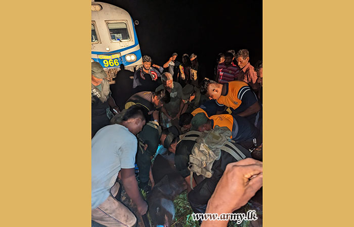 In response to this critical situation, two teams from the 561 Infantry Brigade and the 16 Sri Lanka Singha Regiment swiftly deployed under the direction of Major General S. Kasthurimudali RSP ndc psc, General Officer Commanding of the 56 Infantry Division, and supervised by Colonel R.S.C. Dissanayake RSP, Overlooking Brigade Commander of the 561 Infantry Brigade. These teams, along with Department of Wildlife Officers and Railway Officers, launched an immediate rescue mission.