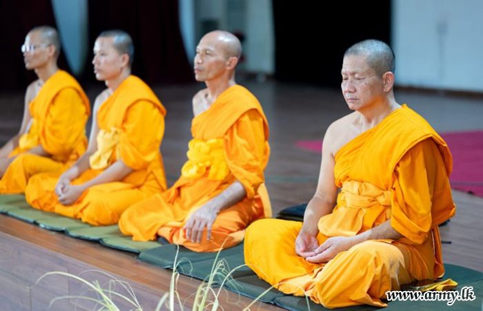 The 'Siyam Lanka Dhamma Yathra' programme was conducted under the close supervision of the Centre Commandant of MIR, with the participation of more than 80 Members of Maha Sangha from Sri Lanka, Thailand, Laos, Cambodia, and Nepal. The programme primarily focused on various meditation methods. The Mechanized Infantry Regiment provided meals, accommodation, and administrative facilities.
