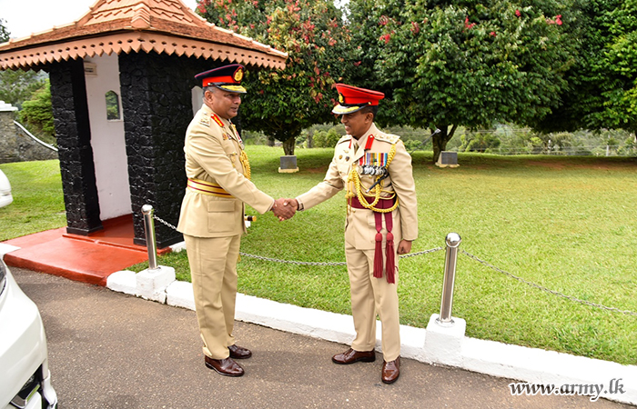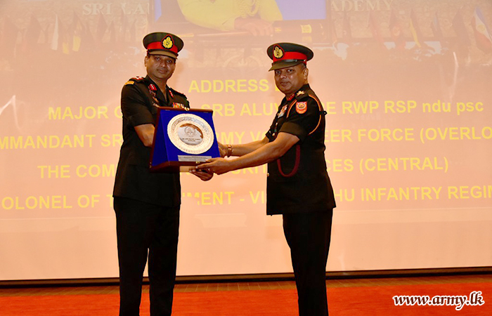 At the end of the his formal visit, Major General U.L.J.S Perera RSP USP psc, Commandant of SLMA presented a memento to the visiting Major General S.R.B Aluvihare RWP RSP ndu psc as a token of appreciation. The gesture was reciprocated.