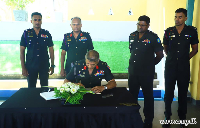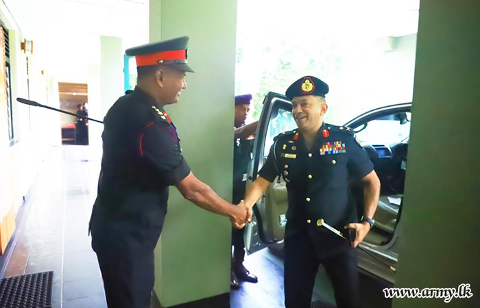 Upon arrival, he was welcomed in a drive pass at the entrance and greeted by Colonel K.S.P Pothupitiya USP psc IG, the Commandant of the School of Artillery.