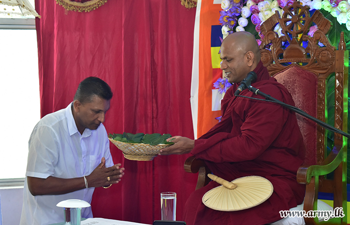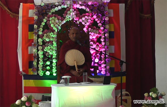 The Dhamma sermon was delivered by the Chief Incumbent of the Pokunuvita Sri Vinayaalankaaramaya (The Buruma Temple), Dr. Kukulpane Sudhassi Thero.