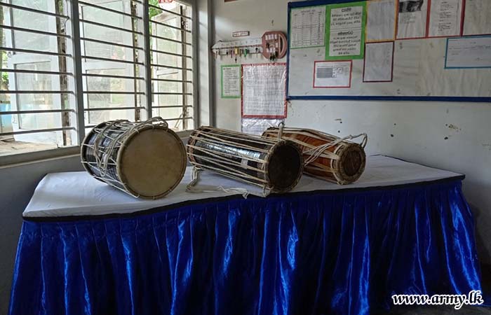 The school's musical instruments, primarily used in the drama section, had become unserviceable after long use. Upon the principal's request, troops of the Brigade repaired the instruments with the support of the leading musical instrument manufacturing institute, Sri Madura in Matara.