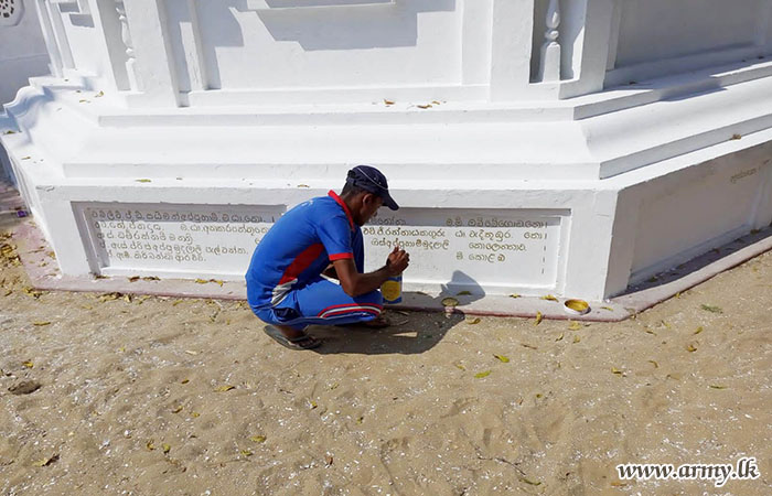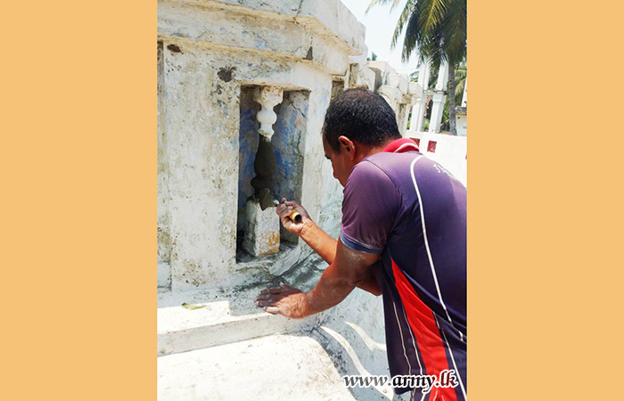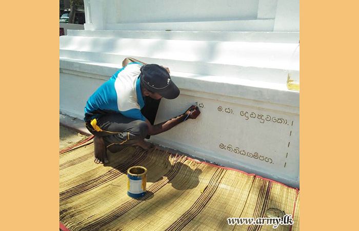 In response to a request from the Chief Incumbent of Sri Vijayarama Temple, troops of the 241 Infantry Brigade undertook a renovation project to renovate Sri Vijayarama Temple. The initiative was carried out under the instructions of Brigadier L.S.D.N Pathirathna RSP USP, Commander of the 241 Infantry Brigade. Financial support for the project was generously provided by Mr. AIA Rangana, a lecturer at the Sri Lanka Institute of Vocational and Tertiary Education in Kadawatha.
