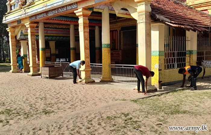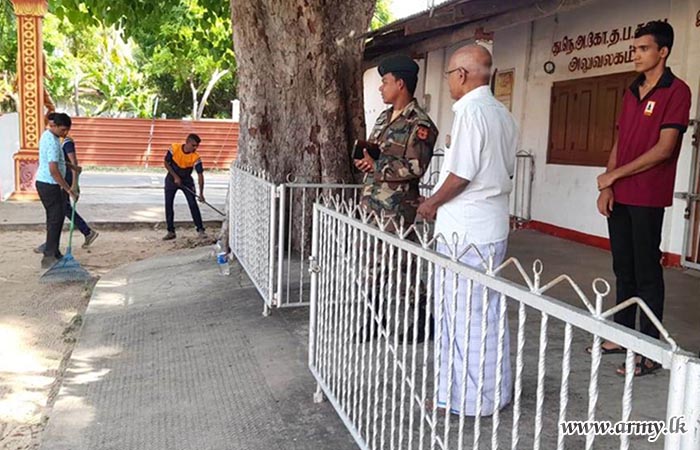 Troops of 4 Sri Lanka Sinha Regiment (4 SLSR) conducted a cleaning program at Bhadrakali Amman Kovil, Nellandai in Thumpalei on 13 June 2024.