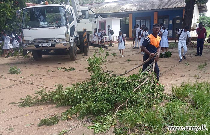 Troops of 12 Infantry Division Removed a Tree at Kudabolana Panchaseeha School