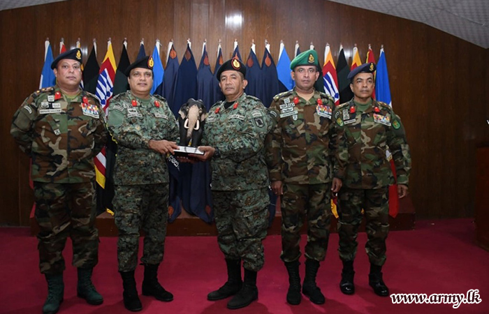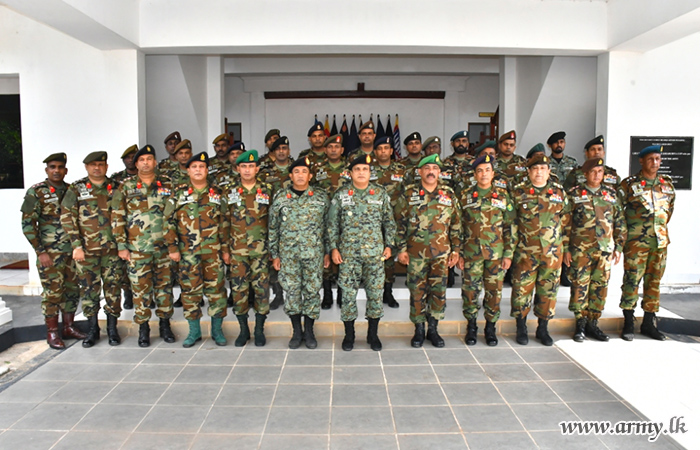 Next, Senior Staff Officers of the Division conducted a comprehensive briefing on the roles and tasks of the Division. Following the briefing, the Commander, SF-Wanni, posed for a group photograph. Afterward, the visiting Commander proceeded to visit the 591 and 593 Infantry Brigades.