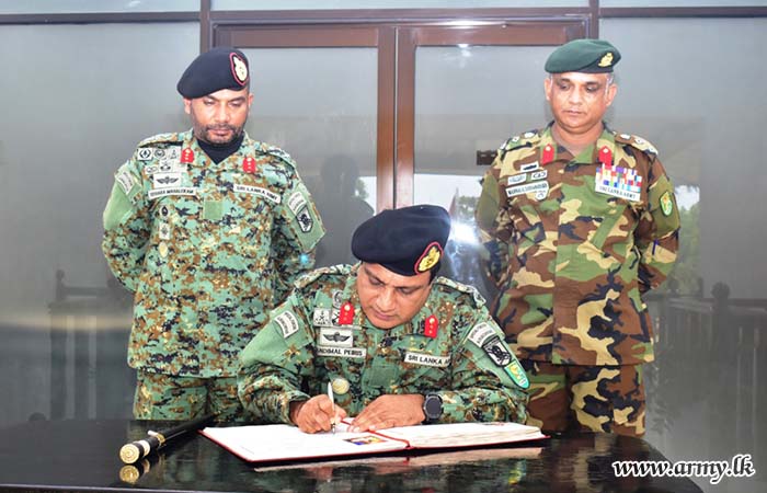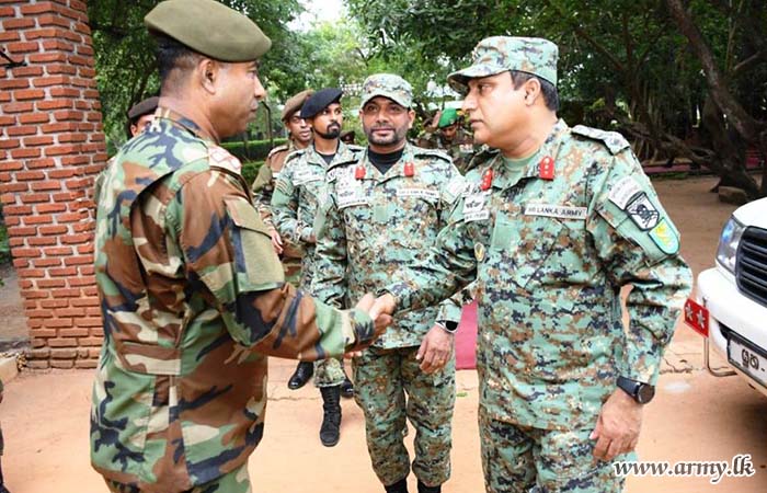 The General Officer Commanding, 54 Infantry Division, Major General M.T.I Mahalekam WWV RWP RSP USP ndu psc, along with the Commanders of respective Brigades extended a warm welcome to the Commander, SF – Wanni upon his arrival at the camp premises.