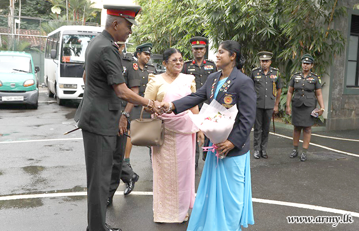 In recognition of her achievements, a felicitation ceremony was held on 06 July 2024 at the SLAWC Regiemt. Major General S. Kasturimudali RSP ndc psc, General Officer Commanding of the 56 Infantry Division and the Colonel Commandant of the SLAWC, commended Staff Sergeant Lekamge for her accomplishments, which have brought pride to both the country and the Army.