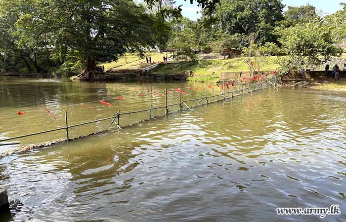 A tragic crocodile attack occurred in the Manik River, resulting in the death of a devotee due to injuries on 06 July 2024. In response, an 83-foot long mesh net has been installed across the river to prevent further incidents. This measure was implemented with the support of the Navy, Police, and Wildlife authorities, under the close supervision of the General Officer Commanding of the 12 Infantry Division.