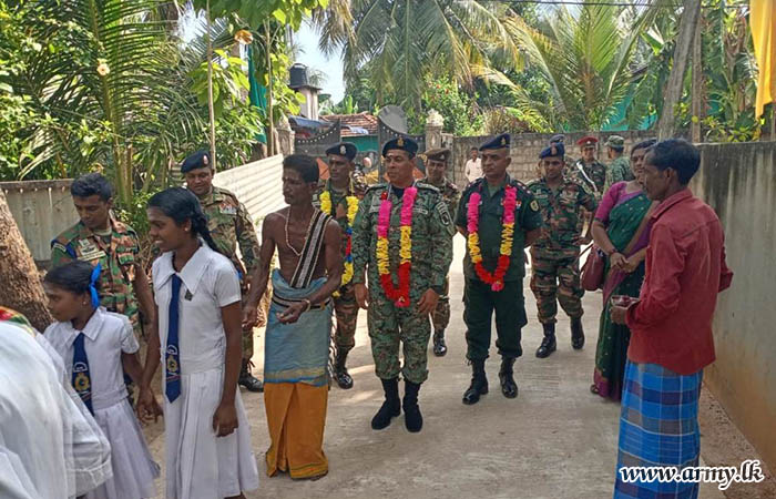 Mrs. Vathani Mohanashakar, Managing Director of Oman Lanka Mineral Exploration Private Limited in Kaikawala, Mathale, generously sponsored Rs. 1.4 million for the project, which will be executed by the troops of 4 Gemunu Watch. The event was attended by Senior Officers, Other Ranks, and the beneficiaries, underscoring a collaborative effort towards addressing local housing needs while supporting community welfare in SF-East.