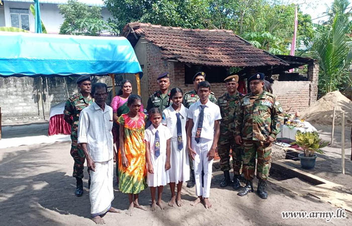 With the coordination of Major General S.A Kulatunge RWP RSP VSV USP psc, the Commander Security Forces - East (SF-East) and the close supervision of Major S.P.I.H Senanayake psc Lsc, the Commanding Officer of 4th Battalion of the Gemunu Watch (GW), foundation stone was laid to construct a fully equipped house for a needy family on 12 July 2024 at Sitthandi by Brigadier R.P.S Prasad RWP RSP USP the Commander 232 Infantry Brigade during a simple ceremony.