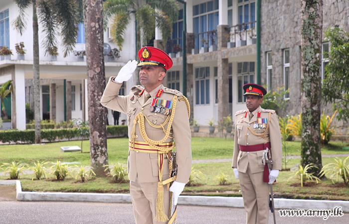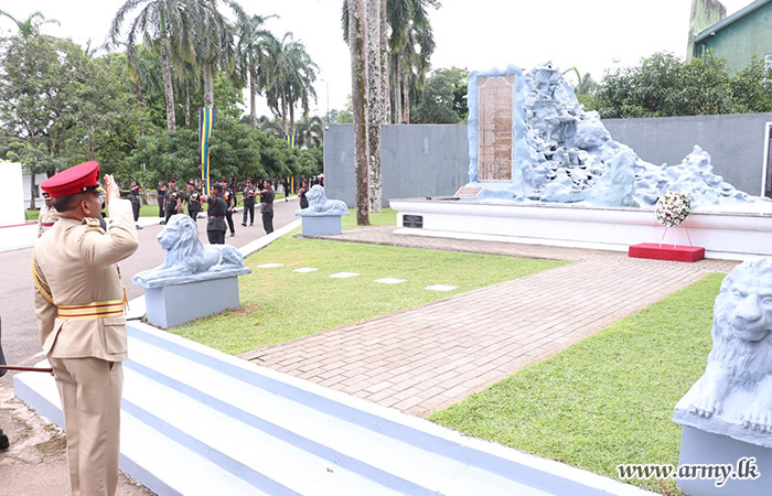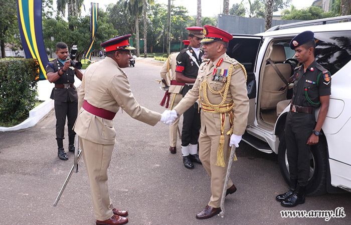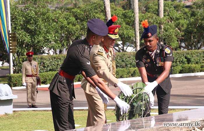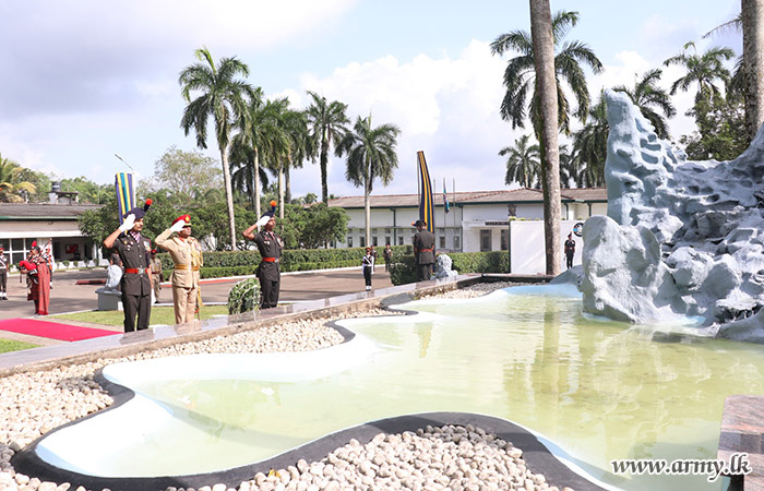 The outgoing Colonel Commandant was warmly welcomed by the Senior Officers of the Regiment, followed by a Guard Turnout by SLAGSC troops. The outgoing Colonel Commandant then laid a floral wreath at the War Heroes’ monument to honour the Fallen Heroes who made supreme sacrifices for the motherland. He was then honoured in a Guard of Honour salute.