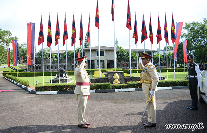 The day's proceedings commenced with a Guard Turnout and a colourful Guard of Honour at the Regimental Parade Ground, followed by an invitation extended to the retiring Senior Officer and his family to the office by the Director General Financial Management and the Colonel Commandant of the Corps of Sri Lanka Engineers, Major General A.H.L.G Amarapala RWP RSP ndc psc.