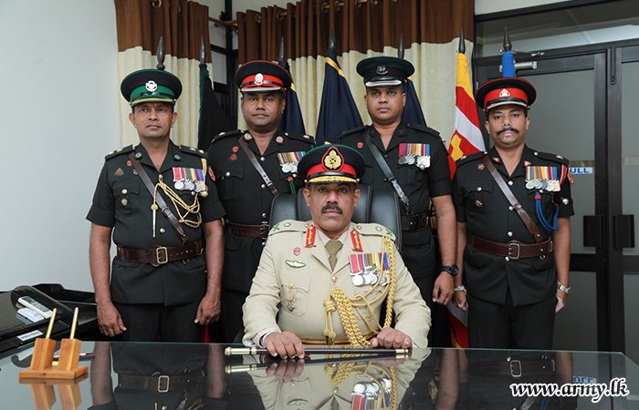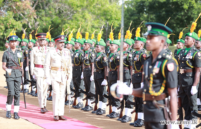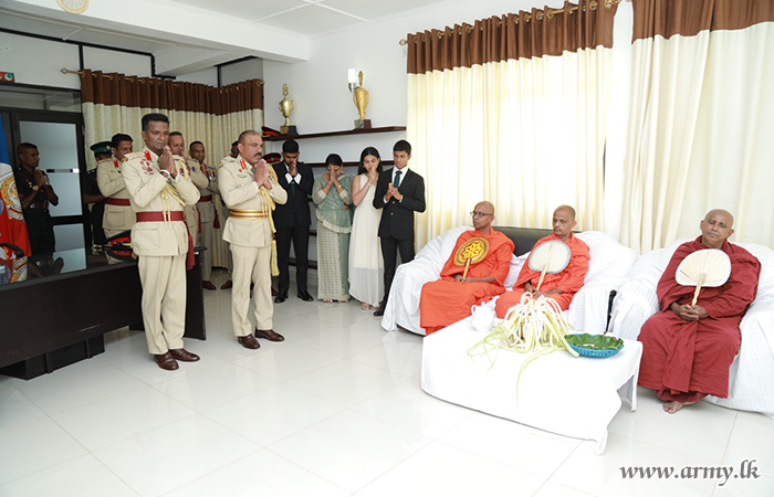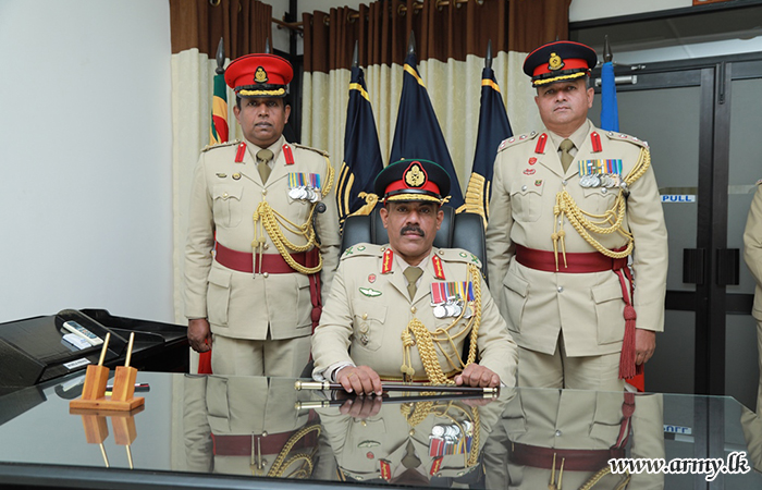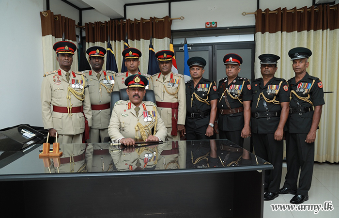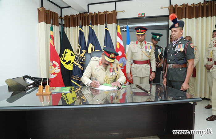 Upon arrival, the new GOC received a warm reception from Staff Officers and then he honored in a Guard Turnout and a Guard of Honour by Gajaba Regiment troops. Amidst 'Seth Pirith' chanting by the Maha Sangha, Major General P.K.W.W.M.J.S.B.W Pallekumbura RWP RSP ndu psc signed an official document to signifying his assumption of duties.