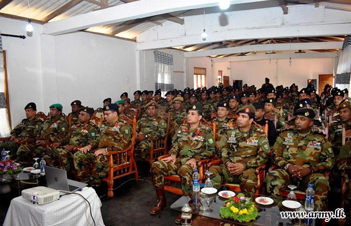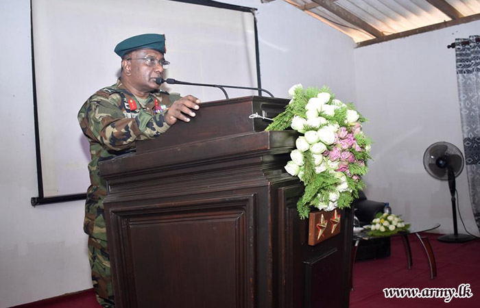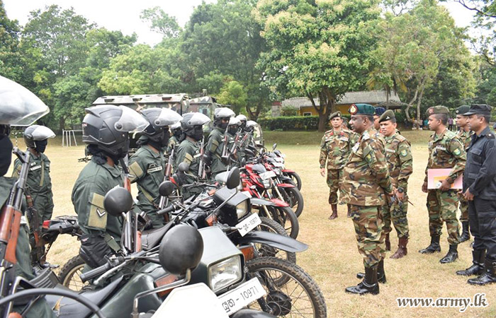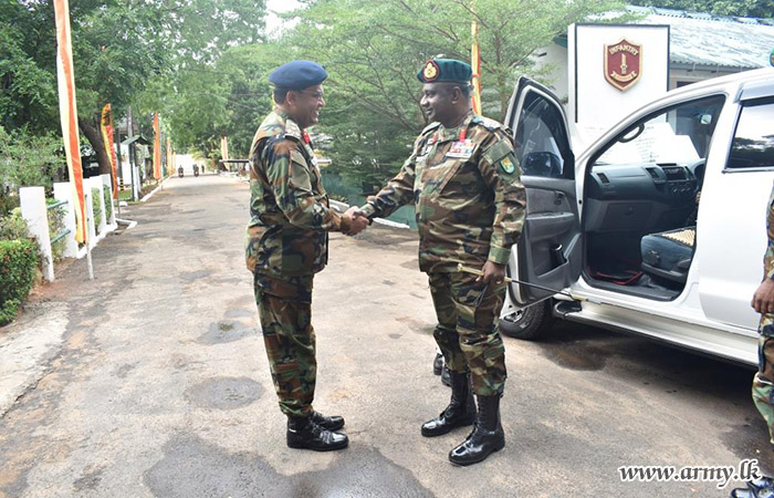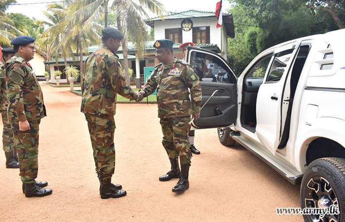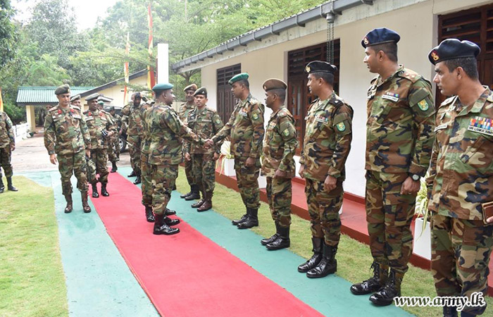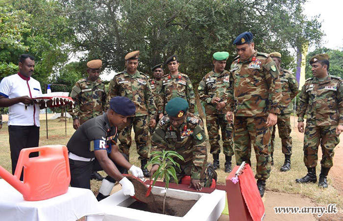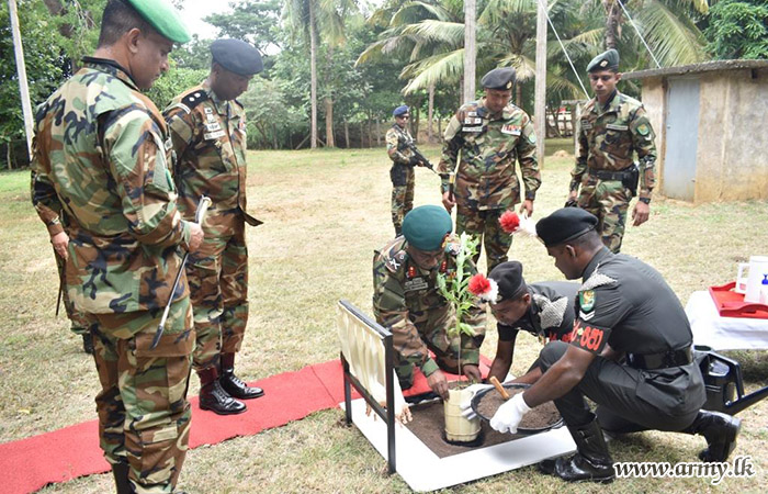 Upon arrival, the visiting Senior Officer was honoured in a drive-pass. Afterwards, the Commander of the Brigade, along with the Commanding Officers of the 7 (Volunteer) Sri Lanka Armoured Corps and the 4 Sri Lanka National Guard, provided detailed briefings on functions and administrative matters pertaining to the Brigade and Battalions. Following this, the GOC planted saplings in the camp premises and then addressed the troops.
