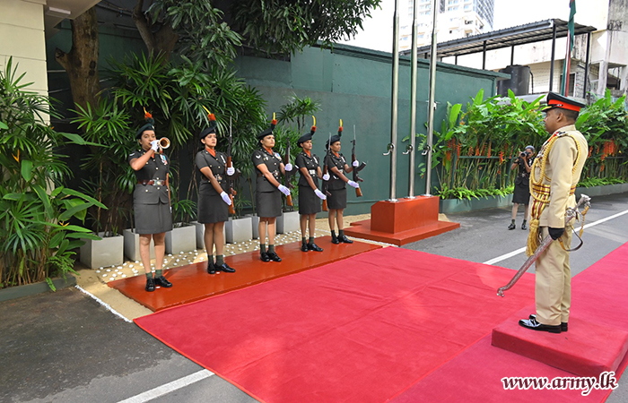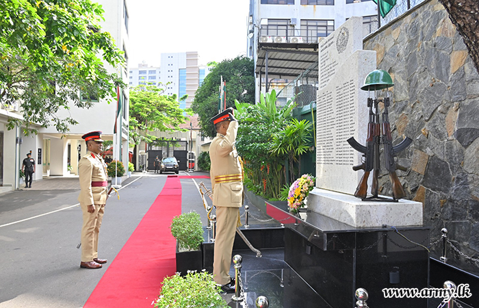 Upon arrival, he was warmly welcomed by Senior Officers and then accorded a Guard Turnout by troops of the SLAWC at the main entrance. A floral tribute was subsequently paid at the War Heroes Monument to honour the SLAWC War Heroines who sacrificed their lives for the nation.