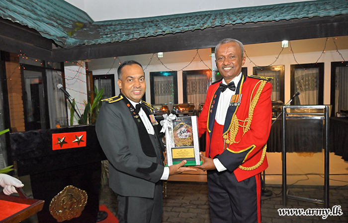 Afterwards, he was honoured in a Guard of Honour salute, followed by all ranks tea. The day concluded with a Dinner Night hosted by all Officers at the Officers' Mess. During the event, a special memento was presented to the newly promoted Senior Officer by Major General S. Kasthurimudali RSP ndc psc, General Officer Commanding of the 56 Infantry Division and Colonel Commandant of the SLAWC, in recognition of his distinguished service and recent promotion.