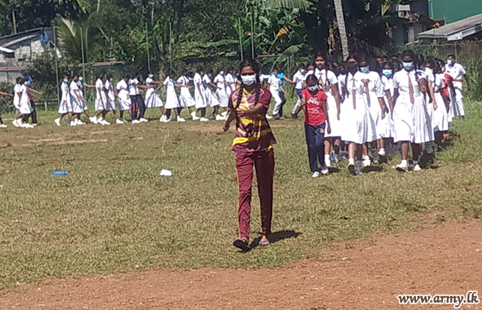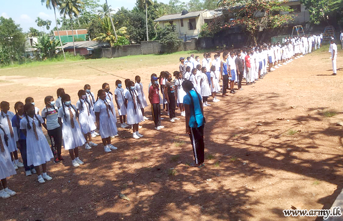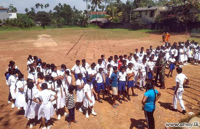 In response to a request made by Mattegoda Vidyadeepa Maha Vidyalaya, Army personnel of the 15 Drone Regiment of Sri Lanka Artillery under the 142 Infantry Brigade of the 14 Infantry Division extended their support for training of students for the sportsmeet parade during 20-22 February.