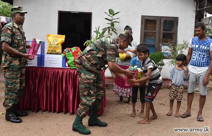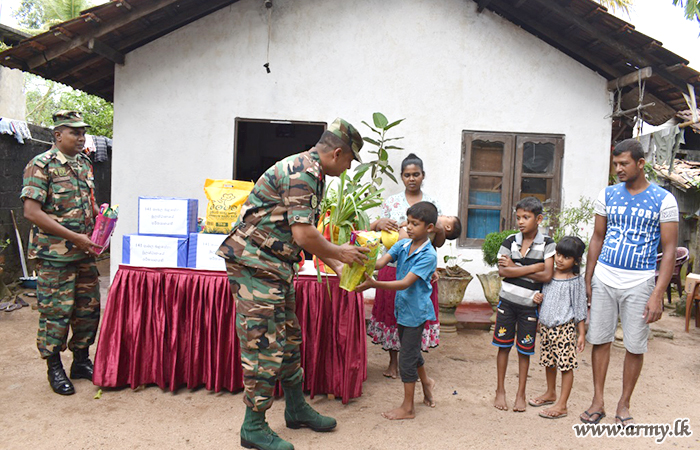 141 Infantry Brigade troops of the 14 Infantry Division under the Security Force HQ-West, concerned about the miserable living condition of a family, consists of a father, mother and four children residing in the Kurikotuwa Grama Niladari Division of Veyangoda provided dry rations, worth about Rs 15,000/= at their expense in order to support their livelihood.