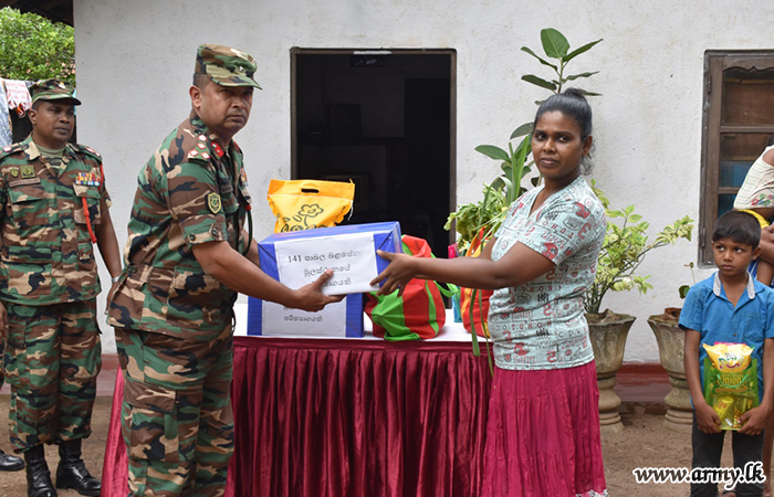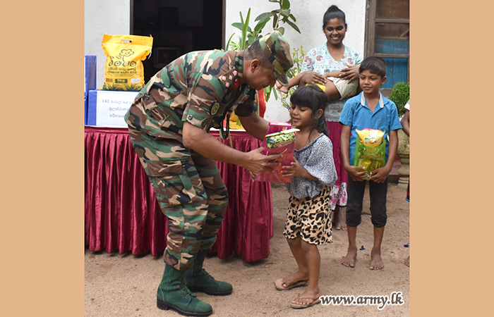 Those relief packs contained rice, dhal, spices, cereals, dry fish, milk powder packets, etc and the project was totally coordinated by the Commander, 141 Infantry Brigade with the blessings of the Commander Security Forces -West. A section of those troops who pocketed out money for the humanitarian project went to their doorstep and handed over the consignment of relief items.
