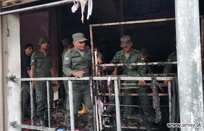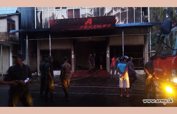 A contingent of Army personnel, belonging to the 8 Sri Lanka National Guard (8 SLNG) under the 242 Infantry Brigade of the 24 Infantry Division of the Security Force Headquarters - East (SFHQ - E) responded to an emergency need around the morning hours on Thursday (March 23) and assisted to extinguish a fire that occurred in a textile shop at Thirukkovil, Thambiliuvil area.
