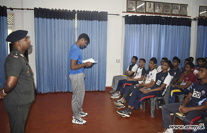 A three-days training workshop on ‘Leadership’ was conducted for 54 school students at St. Anthony’s College, Kandy from 16 to 18 April 2023 at Minneriya Infantry Training Centre at the request of the Principal and staff of the school.