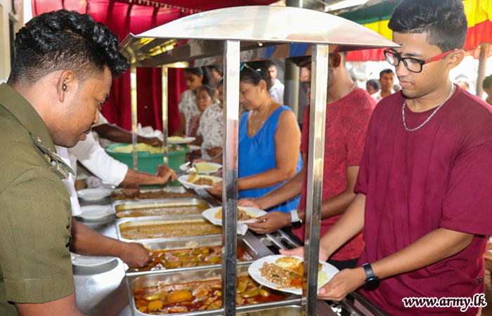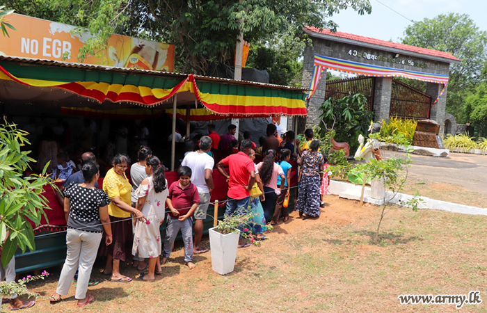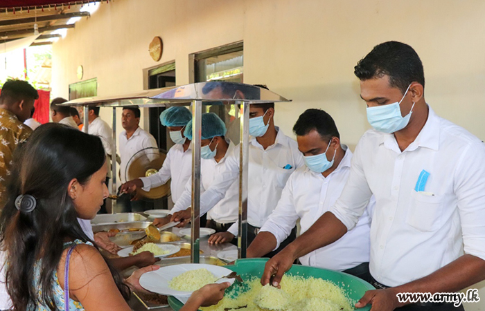 In parallel with the ‘Poson’ Poya day, troops of the 4 Gajaba Regiment (GR) of the 653 Infantry Brigade of the 65 Infantry Division under the Security Force Headquarters Wanni organized a free eatery (Rice Dansala) in Madu area on Poson day (3 June) as per guidelines given by the General Officer Commanding of the 65 Infantry Division and the Brigade Commander of the 653 Infantry Brigade.