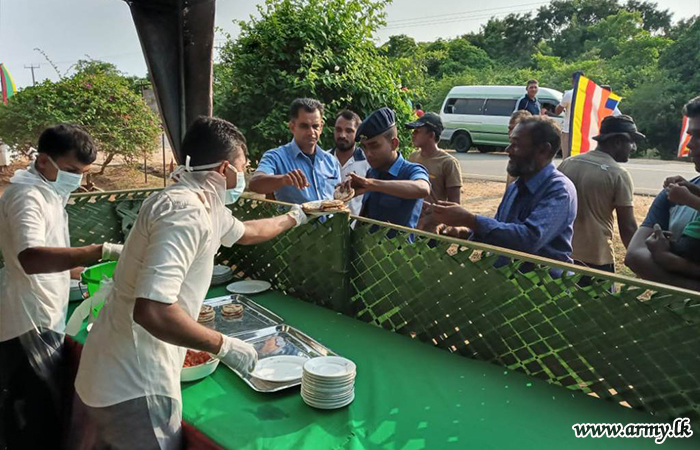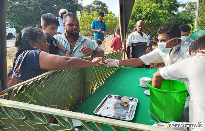 Troops under the 651 Infantry Brigade of the 65 Infantry Division organized a ‘Roti' (flat bread) ‘Dansela’ on account of the ‘Poson’ festival from 1600 hrs to 1800 hrs on Saturday (03 June) at Mulankavil, Kilinochchi.