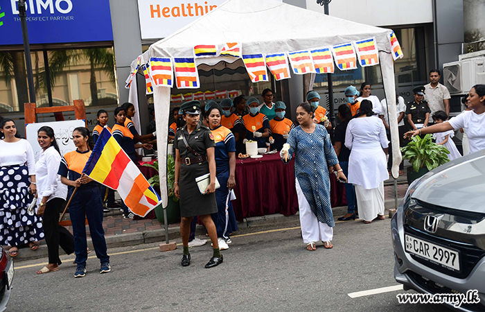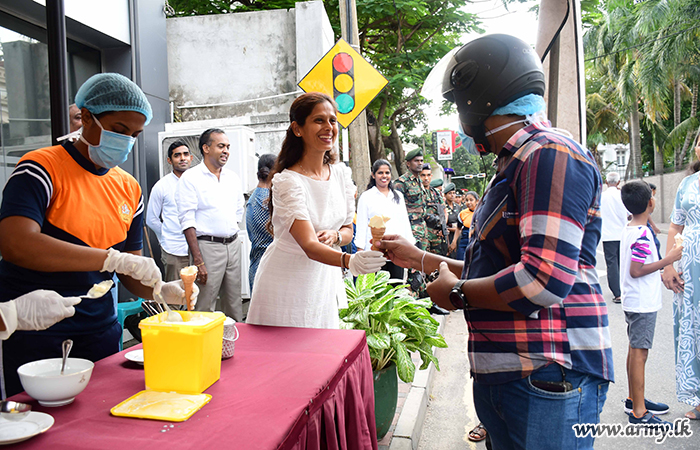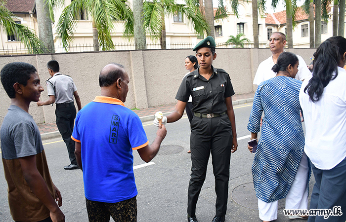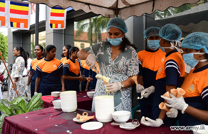 1 Sri Lanka Army Women’s Corps (1 SLAWC), together with the SLAWC Regimental Centre troops and the SLAWC Seva Vanitha Branch organized an ‘ice cream 'Dansala’ on Poson day (03) in order to commemorate the Poson Full Moon Poya Day in front of the SLAWC Regimental Centre, Borella.