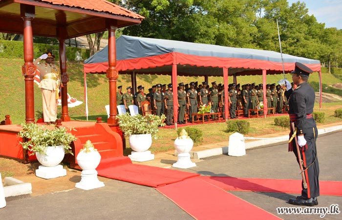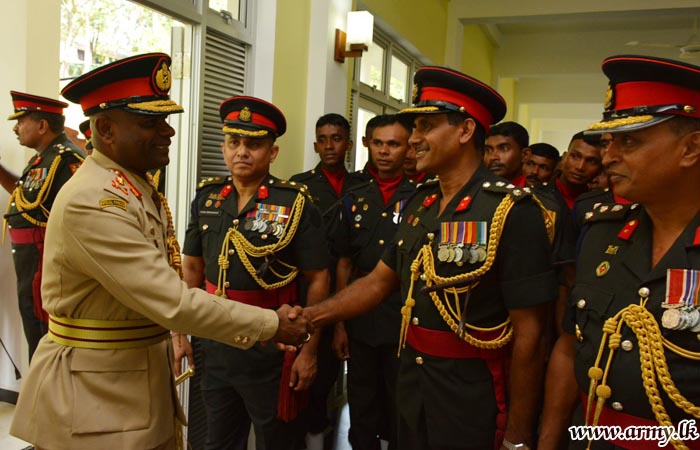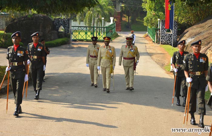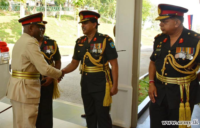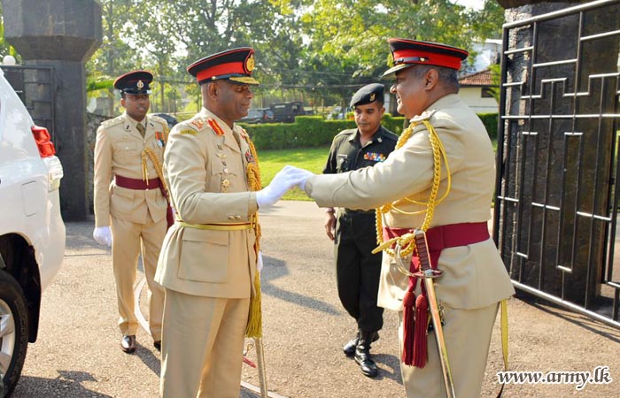 Major General Mahesh Senanayake upon arrival at the Regimental Headquarters entrance was warmly welcomed by Brigadier Nishantha Herath, SLE Centre Commandant and received the Guard Turnout as a military formality.