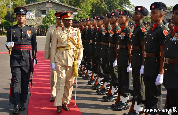 Troops of the Corps of Sri Lanka Engineers (SLE) during a formal ceremony presented military honours and warm greetings to the newly-appointed Chief of Staff of Sri Lanka Army, Major General Mahesh Senanayake at the SLE Regimental Headquarters when he paid a courtesy call to his mother Regiment at Panagoda for the first time after he assumed new office on Tuesday (4).