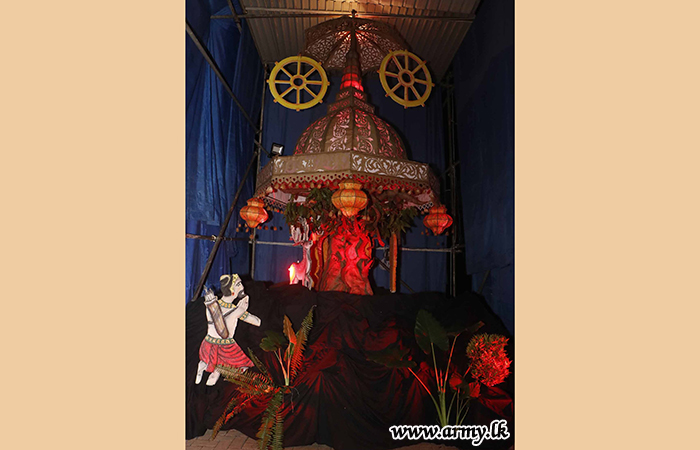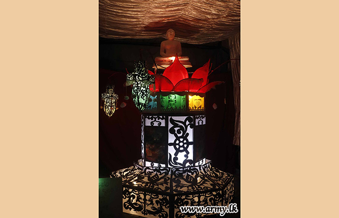 In addition to the event at Bodhirajaramaya Army temple, the SFHQ-West organized a Poson zone along the High Level road from Pitipana junction to Godagama junction in Homagama area which was also a segment of the ‘Homagama Dharma Rashmi’ Poson Zone. This zone included a number of colourful Poson lanterns designed and crafted by the Regimental Headquarters and units belonging to the roops serving in SFHQ-West area.