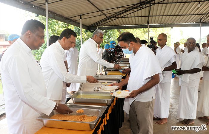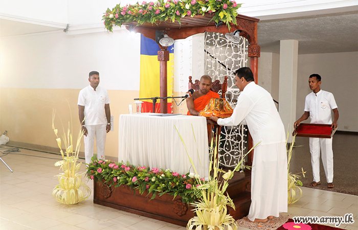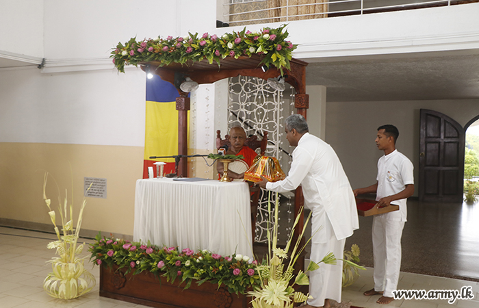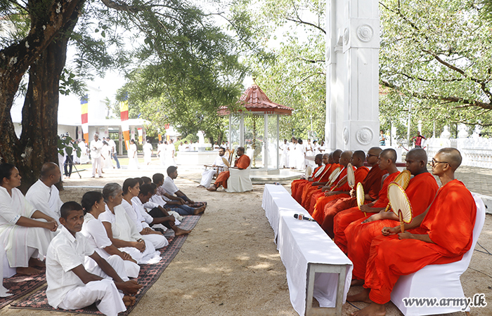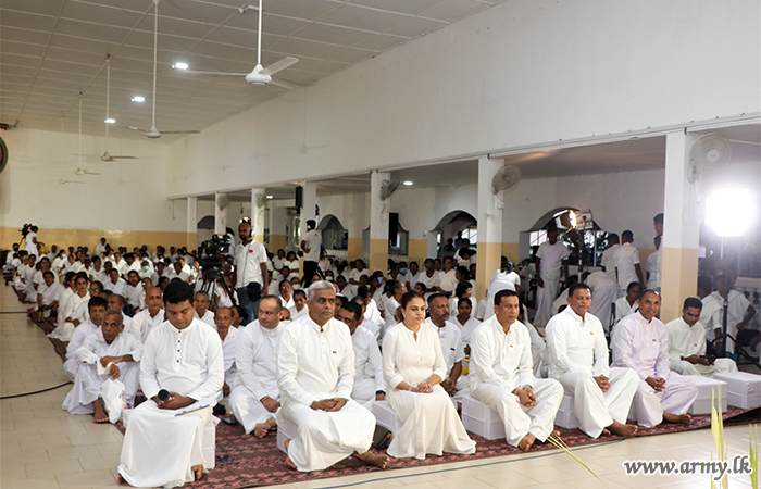 The programme invoked merits on fallen war heroes and blessings on disabled soldiers, serving Army personnel, civil staffers and all family members, and all Sri Lankans at large. The event commenced with sermons, delivered by Venerable Horawala Dhammajothi Nayaka Thera and Venerable Dodampe Saddhavimala Thera. A large number of devotees participated in the day’s agenda, consisted of Pooja, meditation practices, observances, sermons, and recital of ‘Pirith Sutta’.