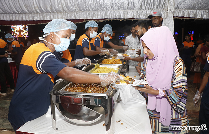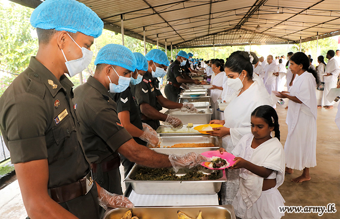 At the same time, the SFHQ-West and Regimental Centres located inside the Army Cantonment Panagoda launched a ‘Rice Dansela’ (Free eatery) at Mahinda Rajapaksa College premises in Homagama. It was held in collaboration with civil agencies, who provided dry and fresh rations, while Army troops provided cooking facilities and distributed them among the devotees who came to witness the Poson Zone in the Homagama area.